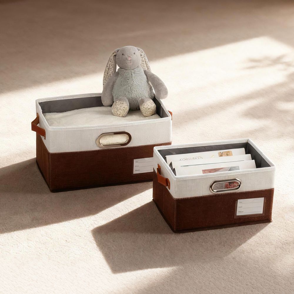 A versatile and elegant storage box crafted from durable fabric with a dual-tone finish. Designed with sturdy faux leather handles for easy carrying, it offers a stylish way to organize clothes, linens, and accessories. Its foldable design makes it easy to store when not in use—perfect for wardrobes, shelves, or under-bed spaces.