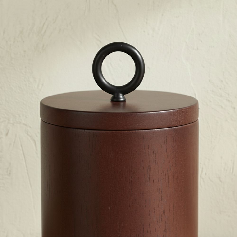Velora Wooden Cotton Jar 8.8 X 9 /13.5 Cm Oak Brown