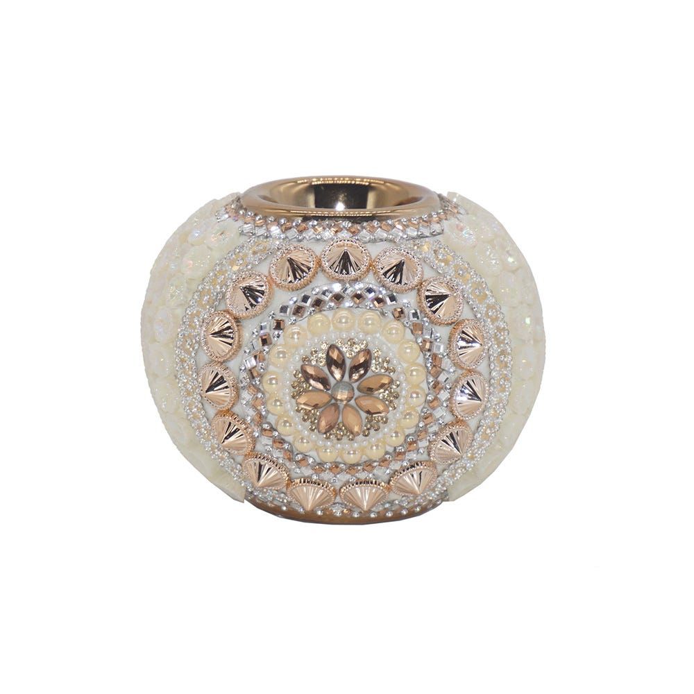 This outstanding t-light hlolder from Zoey is what you need, if you want to take your presentation skills to the next level. The impressive design work is sure to attract the attention of your guests, embedded with beautiful stones and gems. Made from the finest ceramic material, which makes it extremely stong and relatively lightweight. Check out Zoey's collection of bowl and pot from us.