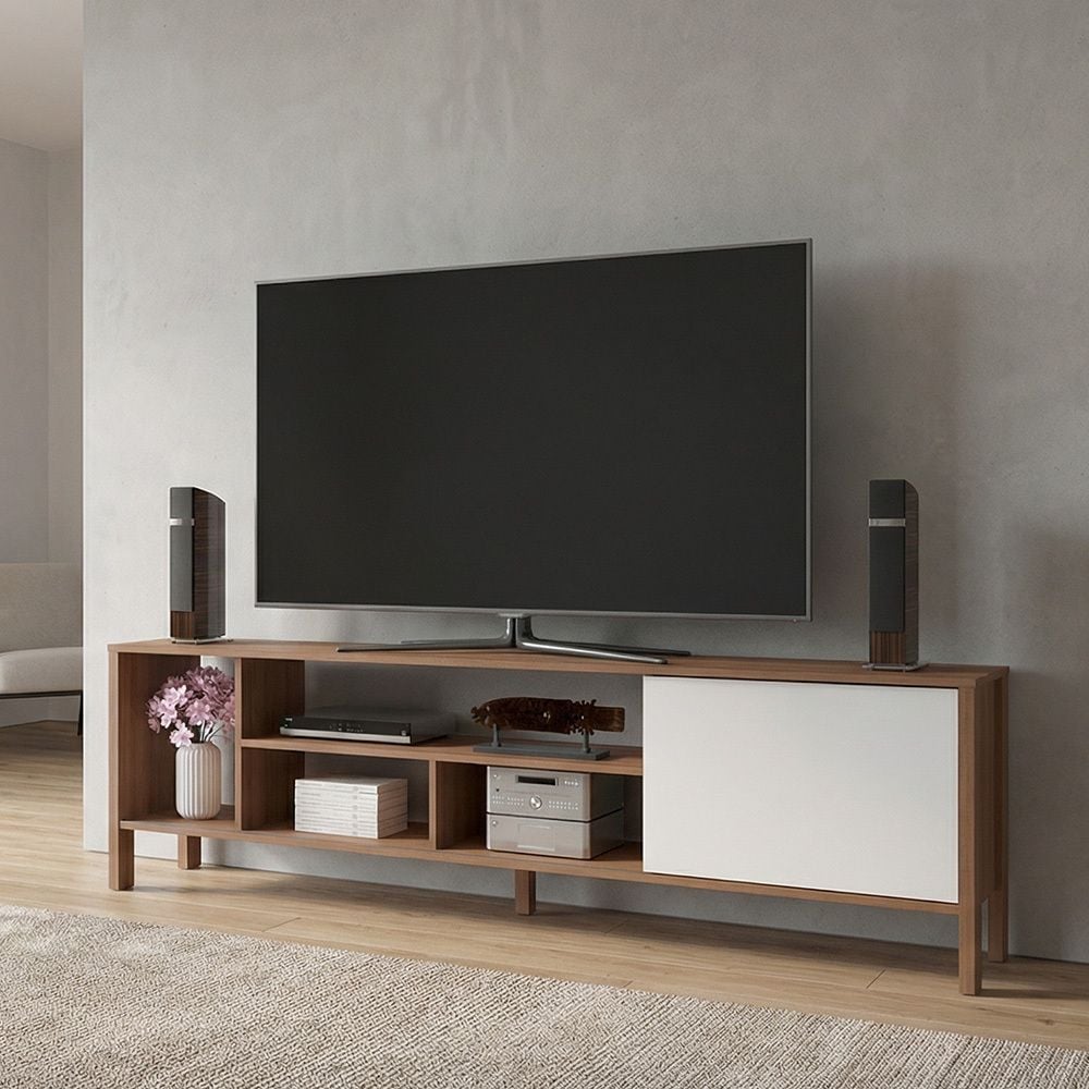 تتميز وحدة التلفاز بخمسة أرفف توفر مساحة تخزين واسعة لأجهزة الوسائط، الكتب وغيرها من الأغراض.