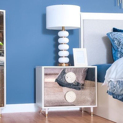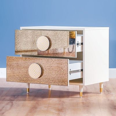 كاترينا - طاولة الليلية - أبيض / مرآة / ذهبي