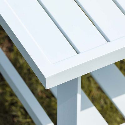 The clean-lined design with a slatted table top prevents water from pooling on the surface.