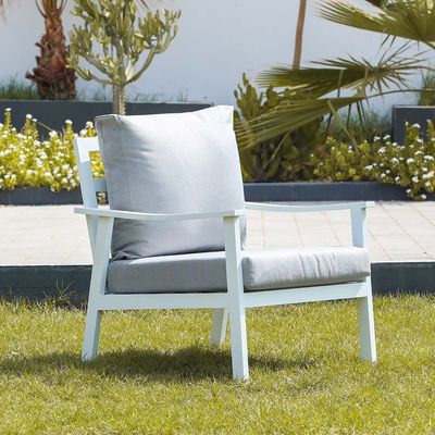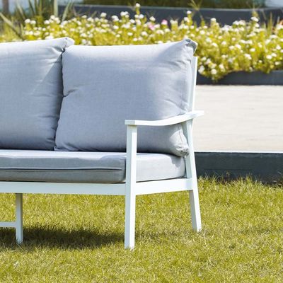 Made of quality aluminum with powder coating and featuring polyester upholstery, this sofa set is sturdy and durable.