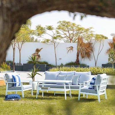 The Imperial 4-Seater Sofa Set features a modern contemporary design, crafted to elevate the look of any outdoor space effortlessly.