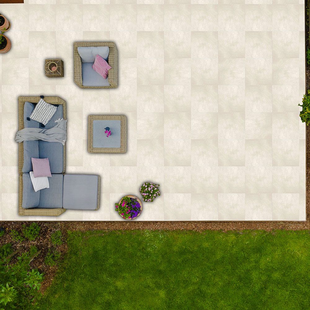 The product Indian Milano Outdoor (10) Station White 20Mm R11 Surface 60X120Cm (1 No/Ctn,0.72Sqm) images have props used for illustrative purposes. Product Color may vary slightly due to photographic lighting or your screen settings.