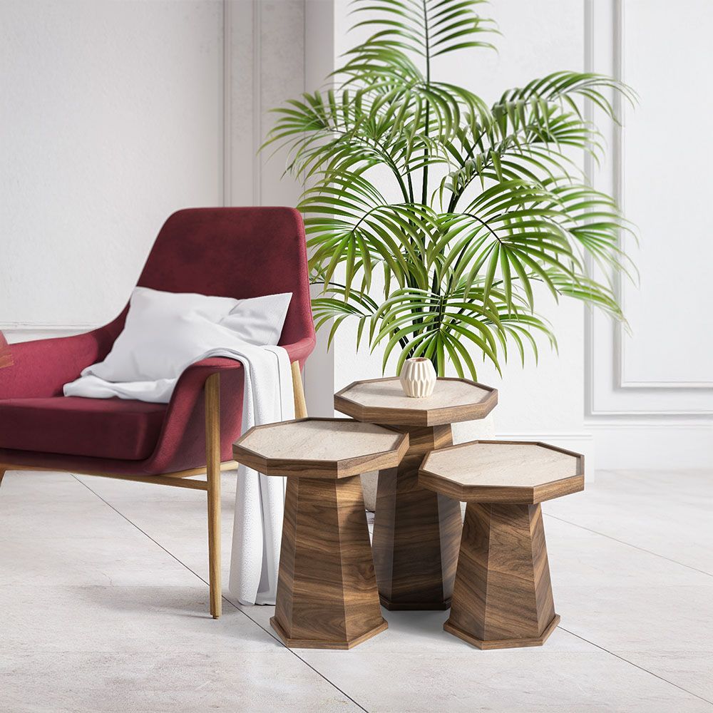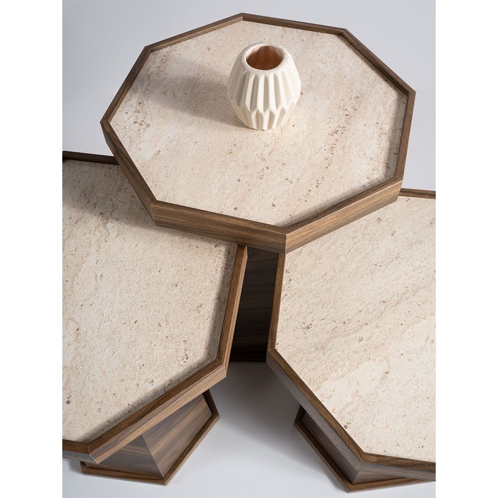 Pyramid Set of 3 Nest of Table - Ivory / Moonstone